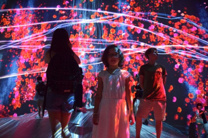 Det er et museum for digital, bevægelig, interaktiv kunst. Her vandrer du rundt i labyrinter af lys, i vildtvoksende digitale skove, langs gange hvor enorme fantasidyr går ved siden af dig. Det er et trip.