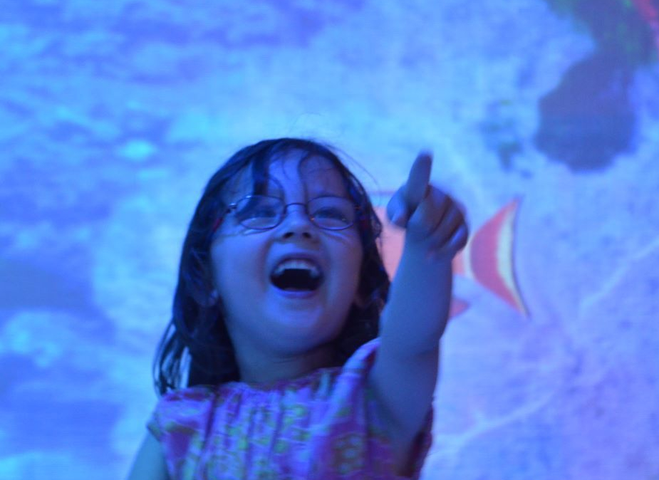 Der er en sci-fi cafe, hvor der gror nye digitale blomster ud af bordet, hver gang du løfter din te-skål, og et enormt børneområde med klatreområder, rutsjebaner og meget andet. Man kan farvelægge en prefabriteret tegning, af f.eks. en blomst, en frø eller en slange, mens enorme digitale hvaler svømmer forbi. Så skanner man tegningen, og den kommer til live på gulvet, som man har har farvelagt den. Din blomst blomstrer, din frø springer omkring og din slange snor sig væk (og spiser måske frøen). Hele det enorme børneområdets bakkede gulv er fyldt med levende digitale dyr, skabt af de besøgende.