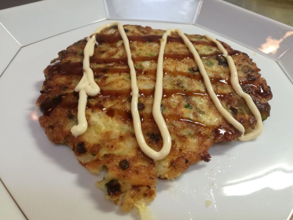 Okonomiyaki er en slags japansk madpandekage. Den er fyldt med kål og gerne andre sunde ting, men den smager ikke sundt. For det er en pandekage. Man putter mayonnaise på. Okonomiyaki smager virkelig godt og er let at lave.