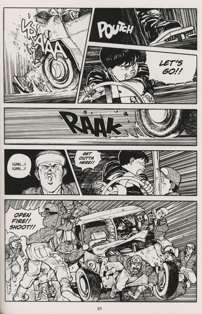 Voldfede “Akira” af Katsuhiro Otomo. Fra første bind, som stort set er en lang action/jagtsekvens.