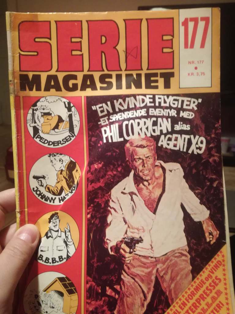 Først selvfølgelig Seriemagasinet nr. 177 fra 1975, inklusive Johnny Hazard-historien “Samurai-sværdets gåde”. Skrevet og smukt tegnet af Frank Robbins.